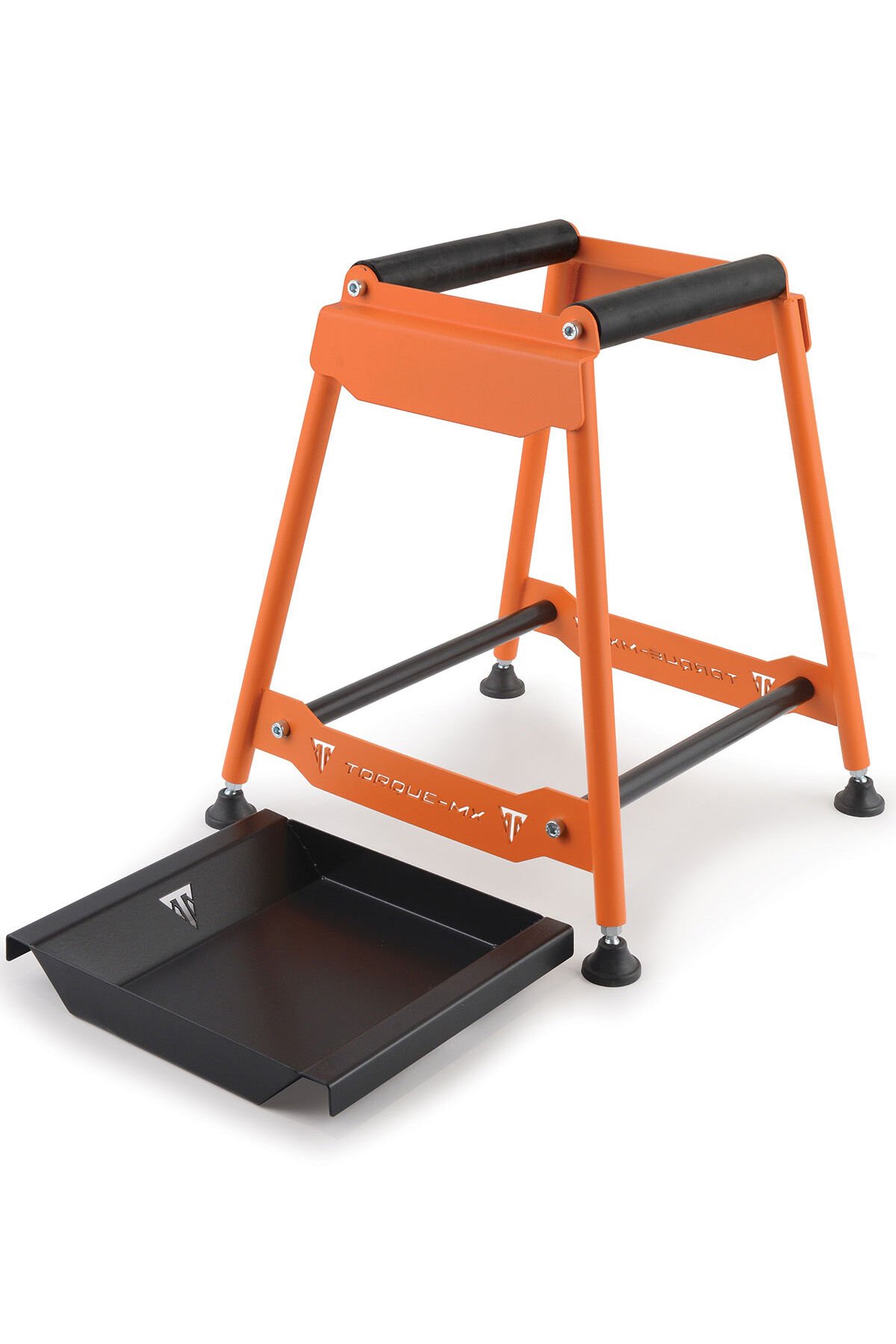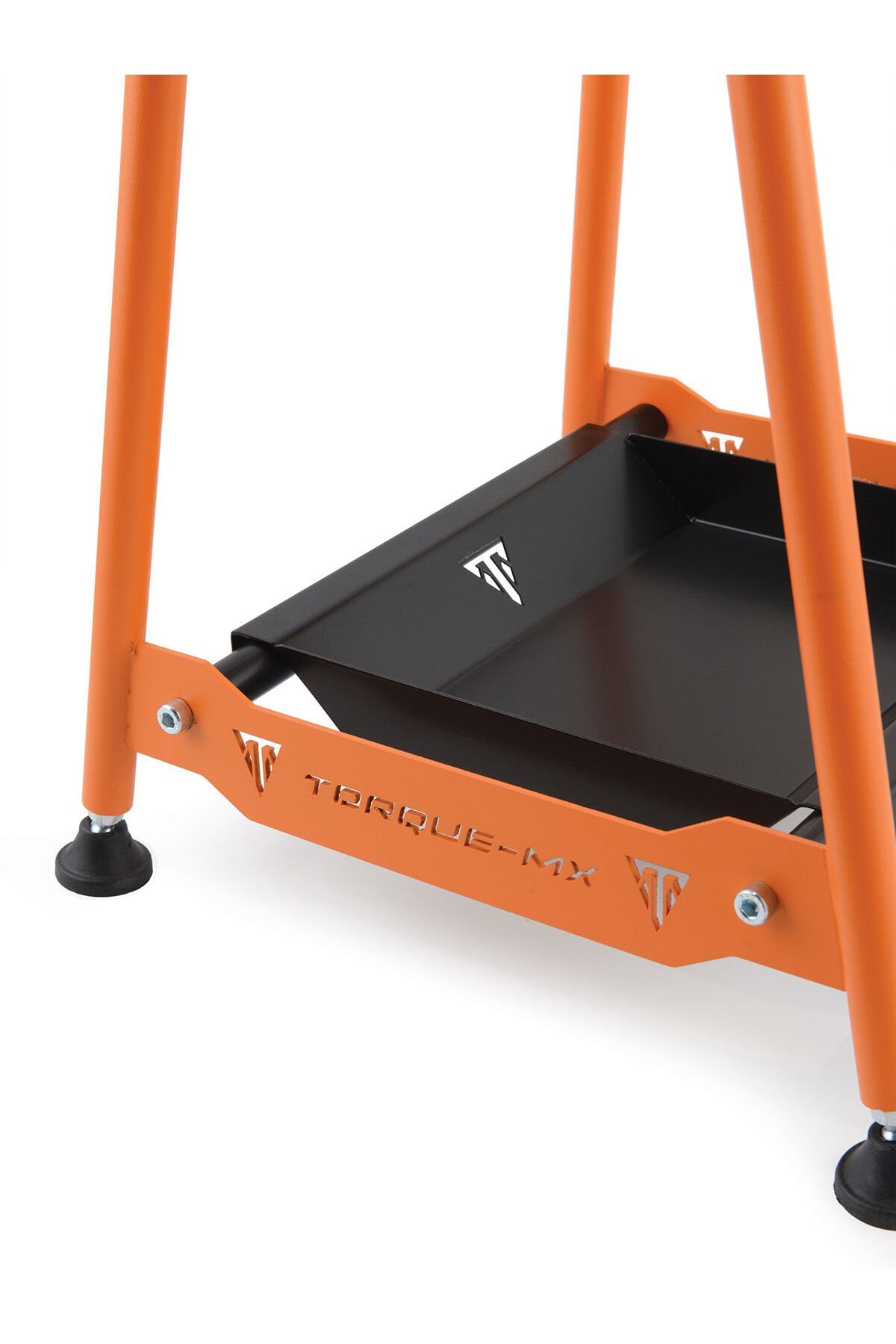 Torque-MX ayarlanabilir motosiklet sehpası, motosiklet bakımında pratiklik ve güvenlik sunar. Çamurlu ve bozuk zeminlerde bile dengede kalabilmesi için ayak açısının değiştirilebilir yapısıyla tasarlanmıştır. Bu özellik, maksimum stabilite ve güvenlik sağlar. Bakım sırasında ihtiyaç duyabileceğiniz cıvatalarınızı ve spreylerinizi saklayabileceğiniz özel bir alanı bulunmaktadır. Bu alan, bakım işlemlerinizde düzen ve kolaylık sağlar. Sehpa üzerindeki özel kauçuk kaplama, yüksek tutuş sunarak devrilme veya kayma riskini minimize eder.