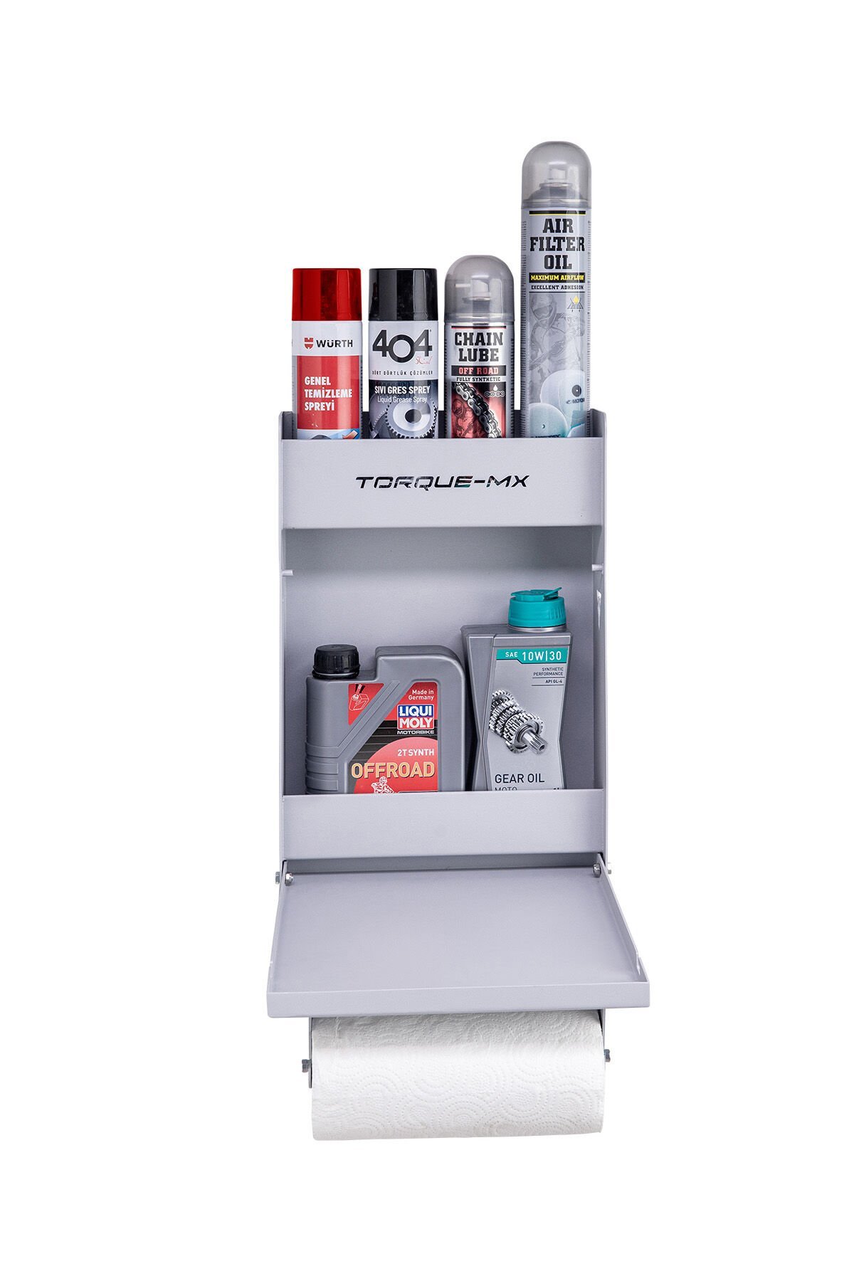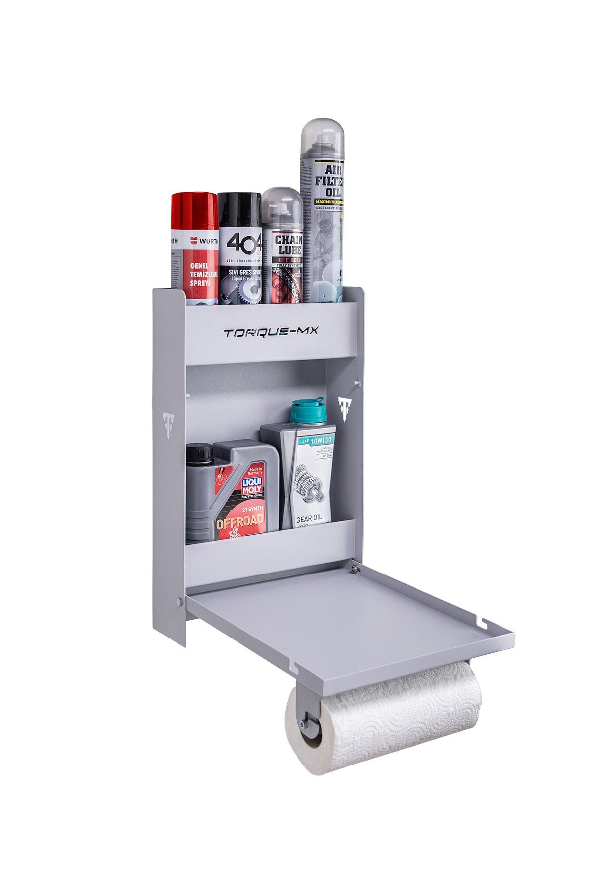 Çalışma alanlarını düzenli ve işlevsel hale getirmek için tasarlanan Torque-MX garaj alet düzenleyici, yağ kutuları ve bakım spreylerini düzenlemek amacıyla geliştirilmiştir. Bu ürün; römorklar, panelvan araçlar, tamir atölyeleri, motor garajları ve ev kullanımı için idealdir.