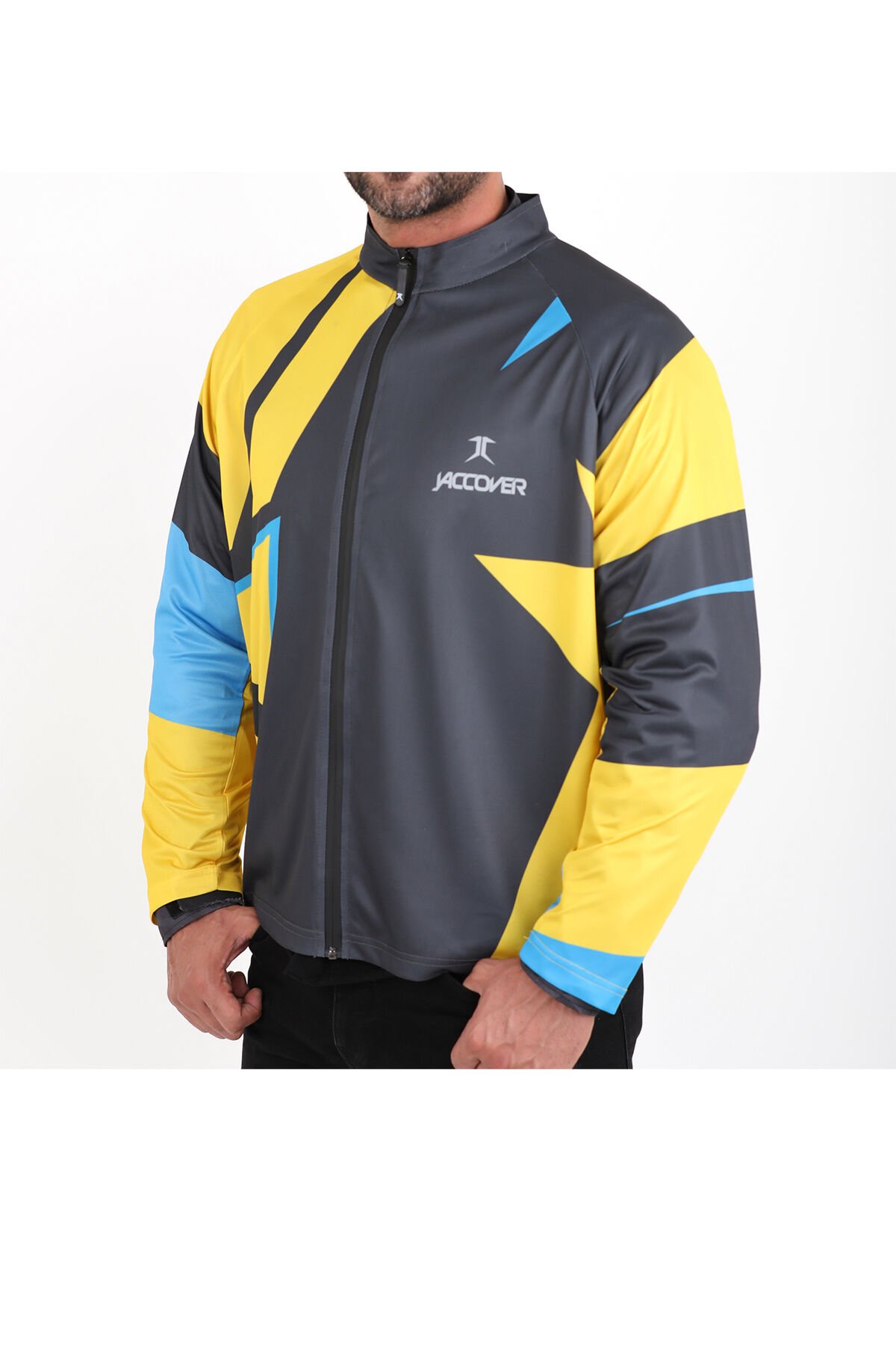 Jaccover, motosiklet sürücüsünün estetik ve korunma ihtiyaçlarına yönelik özel tasarlanmış, fermuarlı bir ”Jersey” olup, en temel özelliği sürüş boyunca montunuzu maruz kaldığı çevre faktörlerinden korumak, bunu yaparken de trafikteki görünürlüğünüzü artırmaktır.