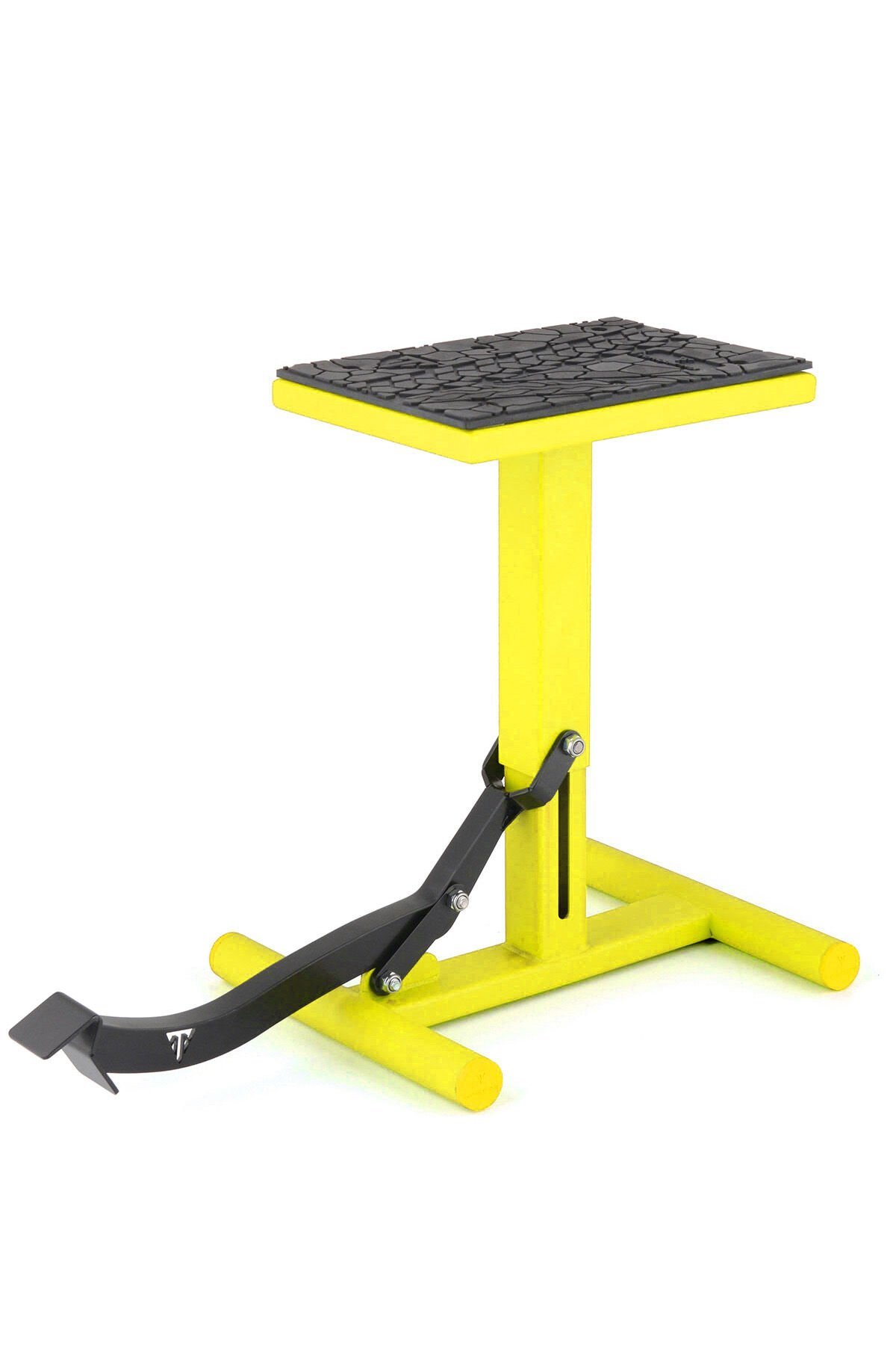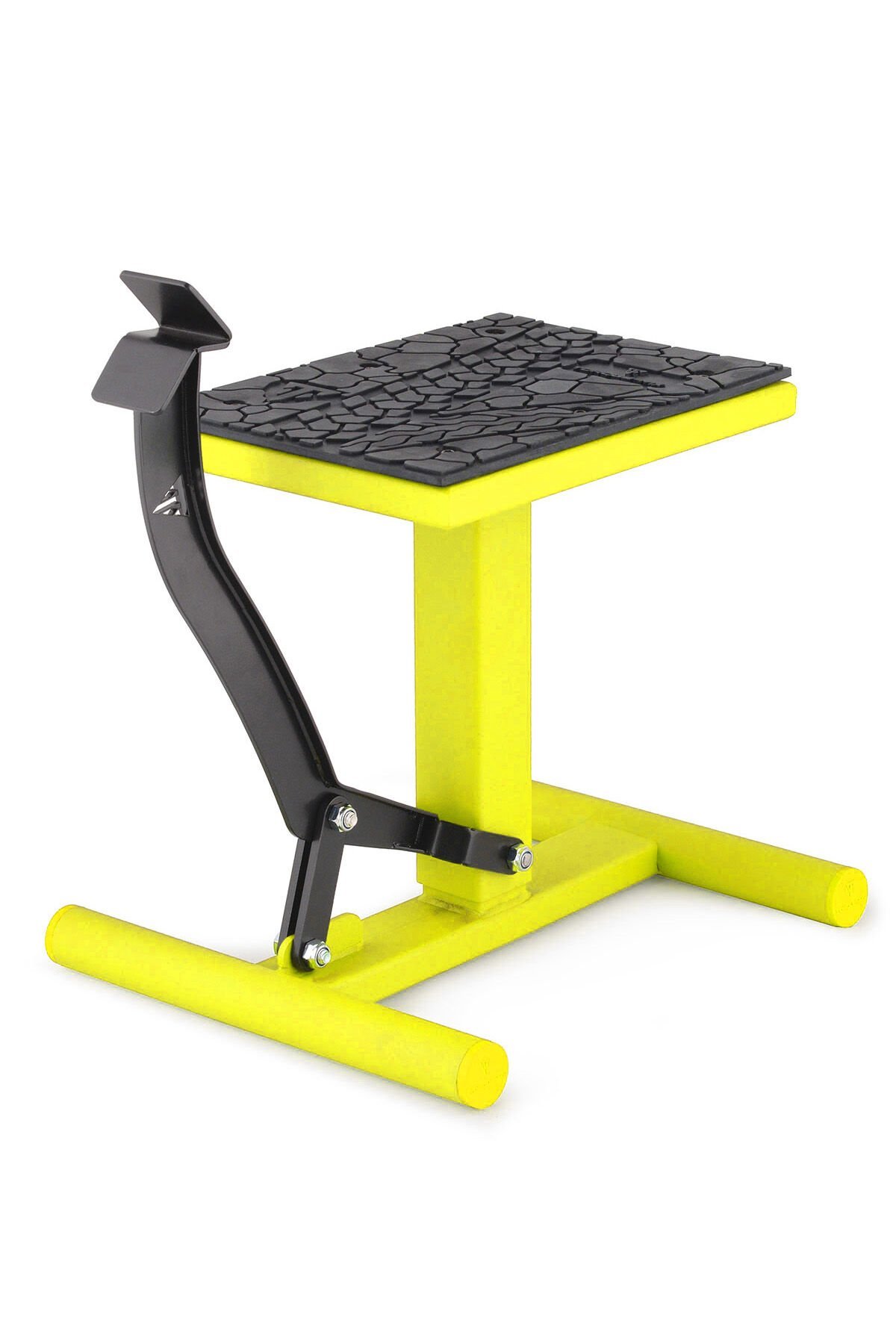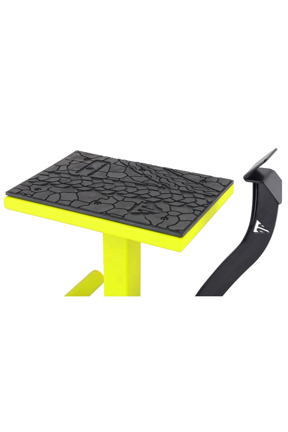 5.340 gram ağırlığındaki bu sehpa, taşıma kolaylığı ile dikkat çeker. Ayarlanabilir kaldırma yüksekliği 30 cm ile 42 cm arasında değişebilir. Böylece farklı bakım ihtiyaçlarına uyum sağlar. Maksimum 150 kg taşıma kapasitesi ile geniş bir yelpazede kullanılabilir. Sarı rengiyle motosikletinizin estetiğine ve kullanım alanınıza uyum sağlar.