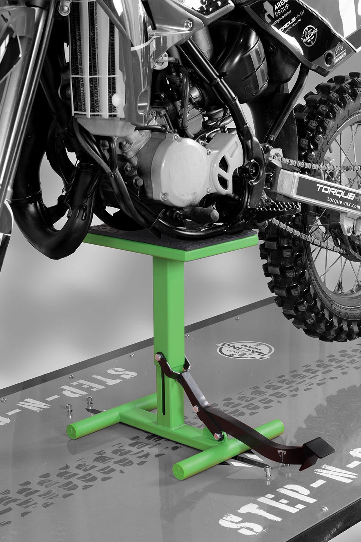 Torque-MX kaldırma sehpası, motosiklet bakımını hem kolaylaştırır hem güvenliğinizi artırır. Optimize edilmiş ayak mesafesi, devrilme ve düşme risklerini minimuma indirir. Çevre dostu elektrostatik toz boya kaplaması, %98 oranında metal yapışma sağlar. Aşınma ile darbelere karşı üstün dayanıklılık sunar.