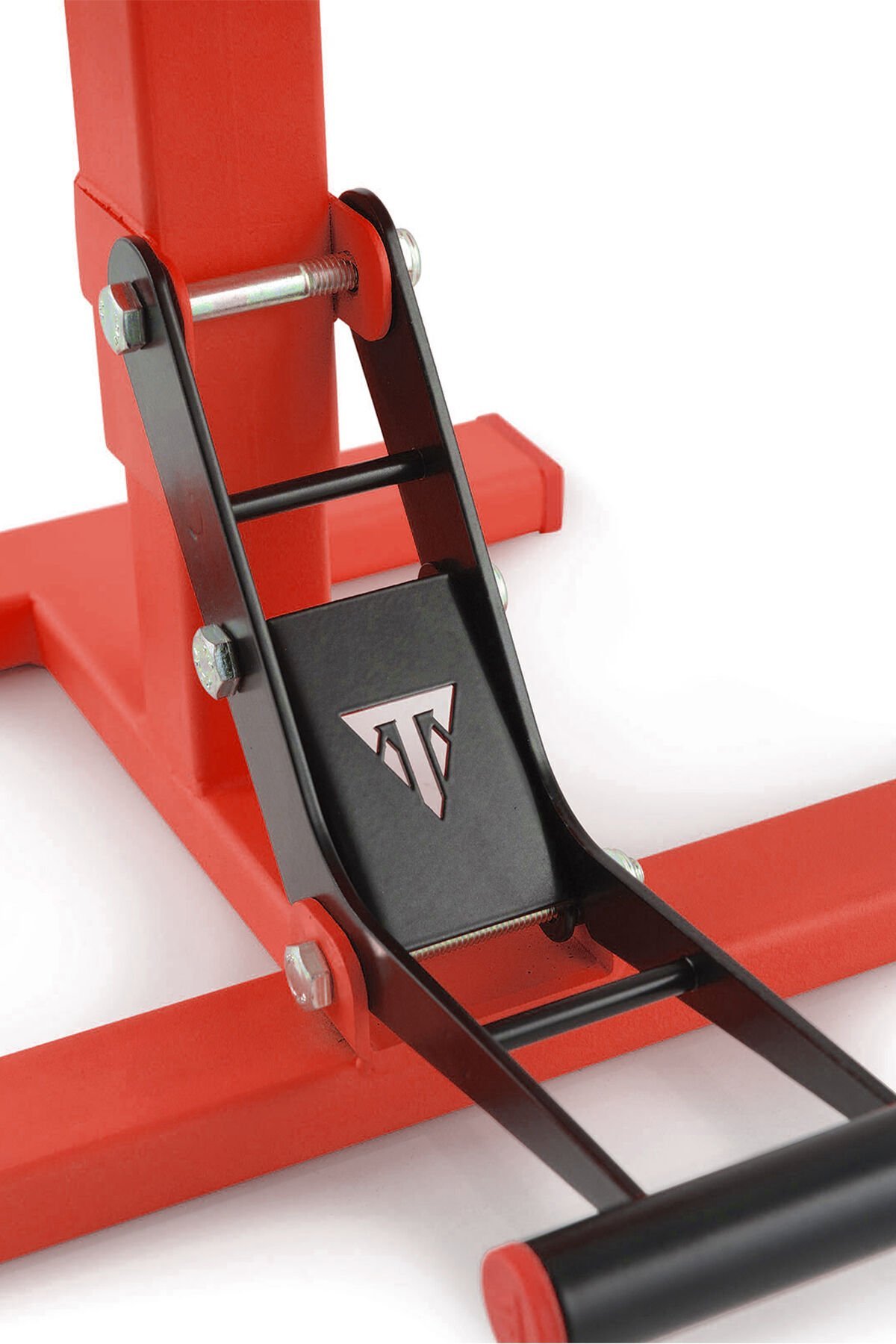 4.160 gram ağırlığında olan kaldırma sehpası, kolay taşınabilir ve kullanımı zahmetsizdir. Ayarlanabilir kaldırma yüksekliği 22.5 cm ile 27.5 cm arasında değişir. Maksimum 100 kg taşıma kapasitesi ile geniş bir kullanım yelpazesi sunar. Kırmızı rengi, motosikletinizin estetiğine ve kullanım alanınıza uyum sağlar. Torque-MX kaldırma sehpası; motosiklet bakımını, padok alanlarını, garajları ve mağazaları daha güvenli ve düzenli hale getirir.