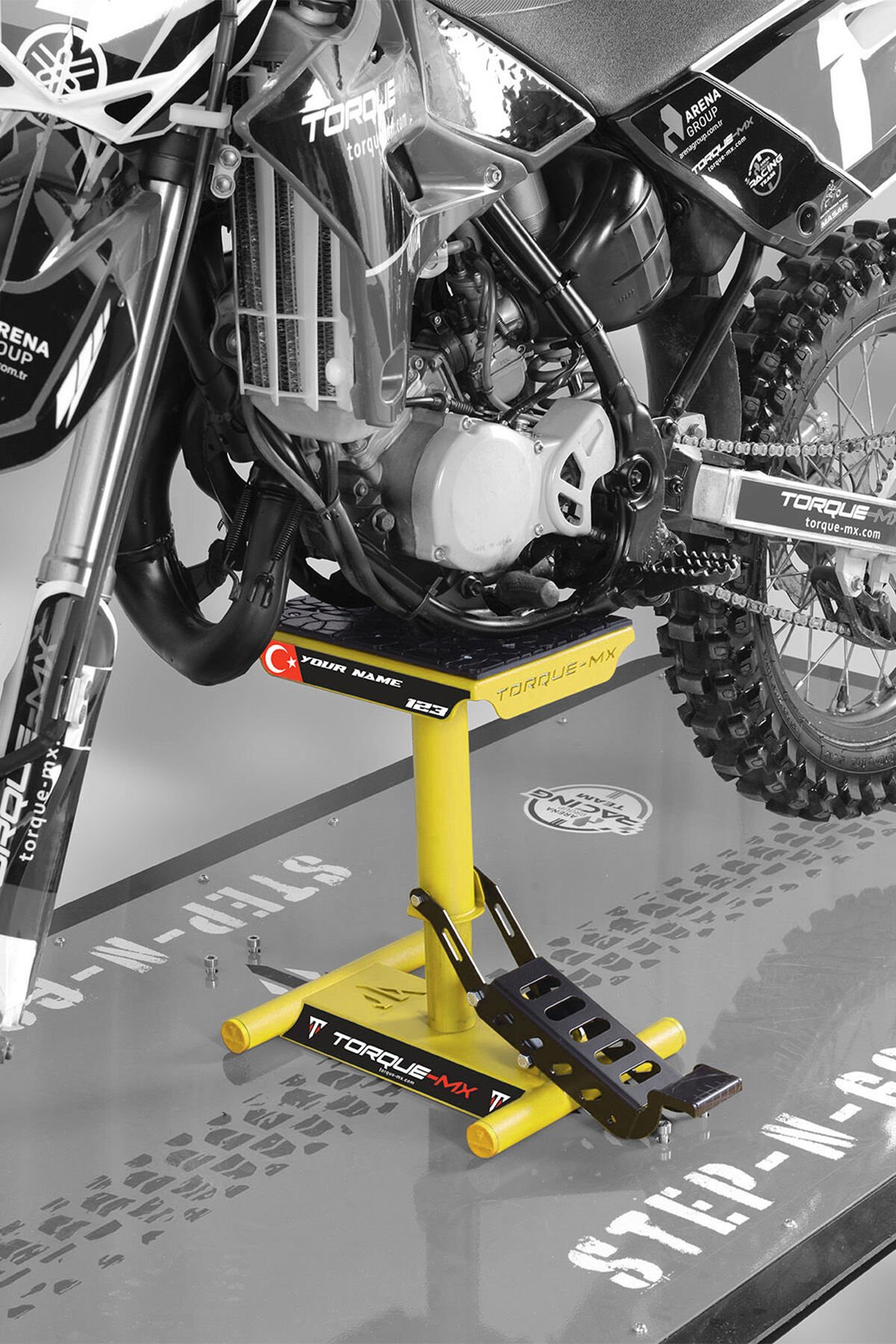 Torque-MX kaldırma sehpası, motosiklet bakımını ve güvenliğini bir üst seviyeye taşır. Çevre dostu elektrostatik toz boya kaplaması, %98 metal yapışma oranıyla aşınma ve darbelere karşı dayanıklıdır. Motokros ve enduro motosikletleri ile uyum sağlar.