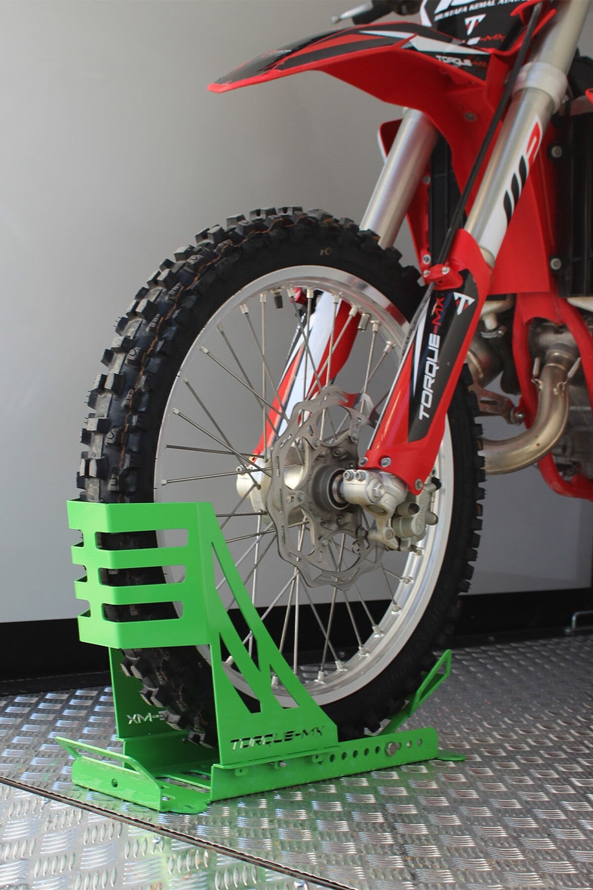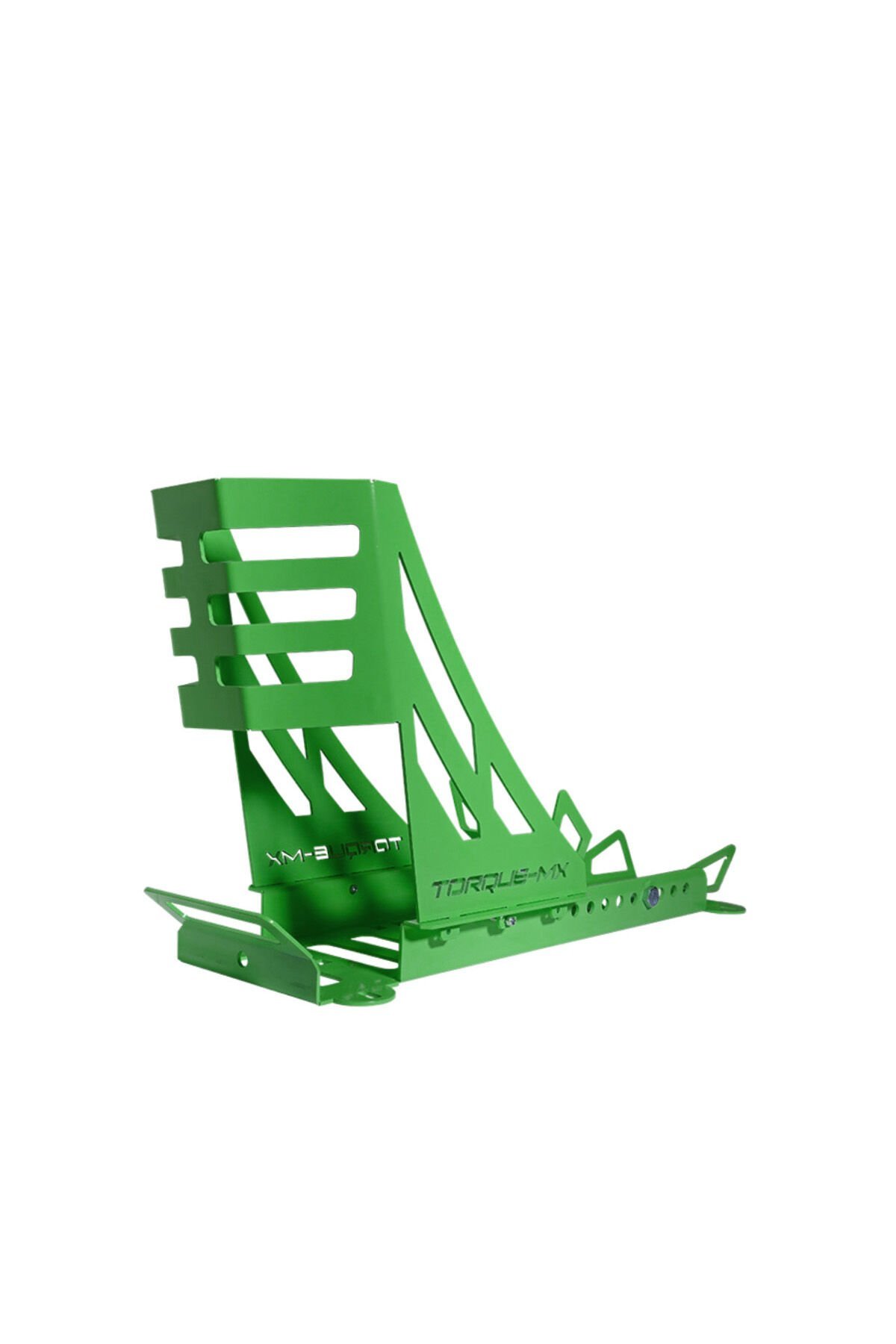 Torque-MX motosiklet teker sabitleyici; motosikletlerinizi treyler, kamyonet veya pikap gibi taşıtların içinde güvenli bir şekilde sabitlemek için tasarlandı. Dayanıklı yapısı ve denge sağlama özellikleriyle, motosiklet taşımacılığında güvenliği artırır. Yeşil rengi, kullanıldığı alana ve motosiklete estetik bir uyum sağlar.